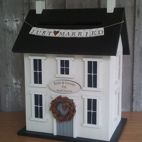 Osteria Via Stato was wonderful with setting up the tables with my centerpieces. I dropped them off the day before my wedding with instructions and as you can see above, they turned out wonderful. As for my gifts and give-aways table, I was so happy everything fit. My give-aways did double duty as seating arrangements and cookies. Osteria provided the cookies for the guests as part of our wedding packages and they assembled them together. Since my budget for flowers was lower then the average wedding, I wanted to spluge on a house for our wedding cards. I found the perfect one on Etsy DoorCountyWoodworks. I felt that I can use it for a house decor or as a dollhouse for kids. I currently have this in our dining room side table.