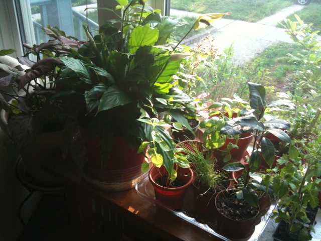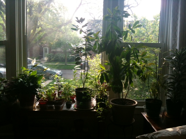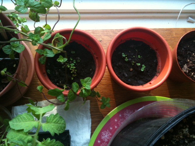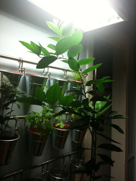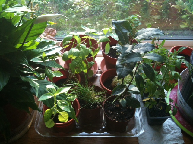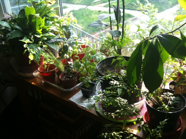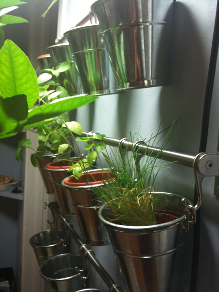 And since Chicago has been getting continuous spring like temperatures and more than 10 hours of sunlight, I have decided to move all the herbs and lime tree to our East facing window. We already have a family of plants set up there, it’s a little crowded but everyone needs a good amount of sunlight everyday. We’ve been using florescent lights all winter and getting growth but it’s very slow. I’m hoping with the move, the herbs get fuller.