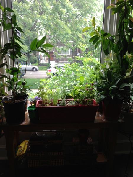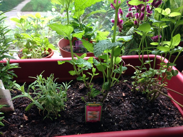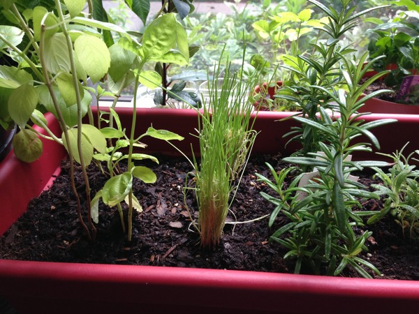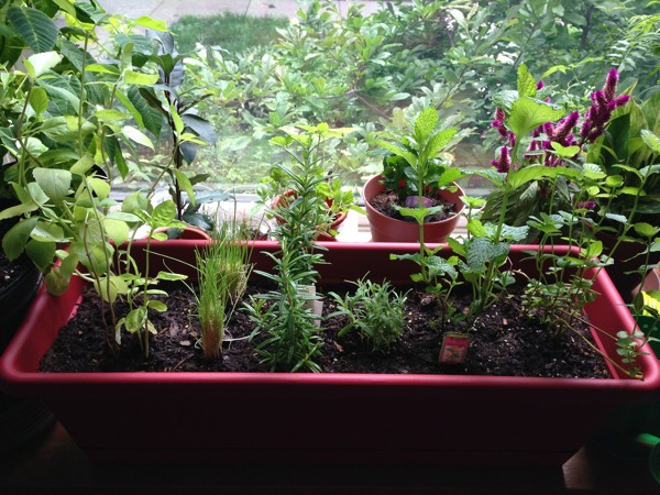 The rest of the herbs are doing great. I pruned some of the basil and mint to encourage growth and the baby basils are now tweens. I’ve combined the herbs into one long pot with some turtles to keep them company.