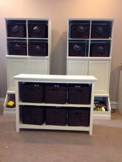 Next on my to-do list was simple baby furniture. I didn’t want to spend more that $80. Yes, $80!!! I wash;t activity looking but daily browsing was part of my day. Finally, I came across this Pottery Barn Cameron 2-Shelf Bookcase, Pottery Barn Cubby and Base Set, and 14 Pottery Barn baskets for FREE. Yes, FREE. The Mama’s group I’m part of on Facebook frequently sells or gives away their baby items. I was lucky enough to snatch all within 43 seconds of her posting. When we came by to pick everything up, the mama was so nice enough to add a Pottery Barn play table with 4 chairs. I felt so thankful, we bought them a bootle of red wine.